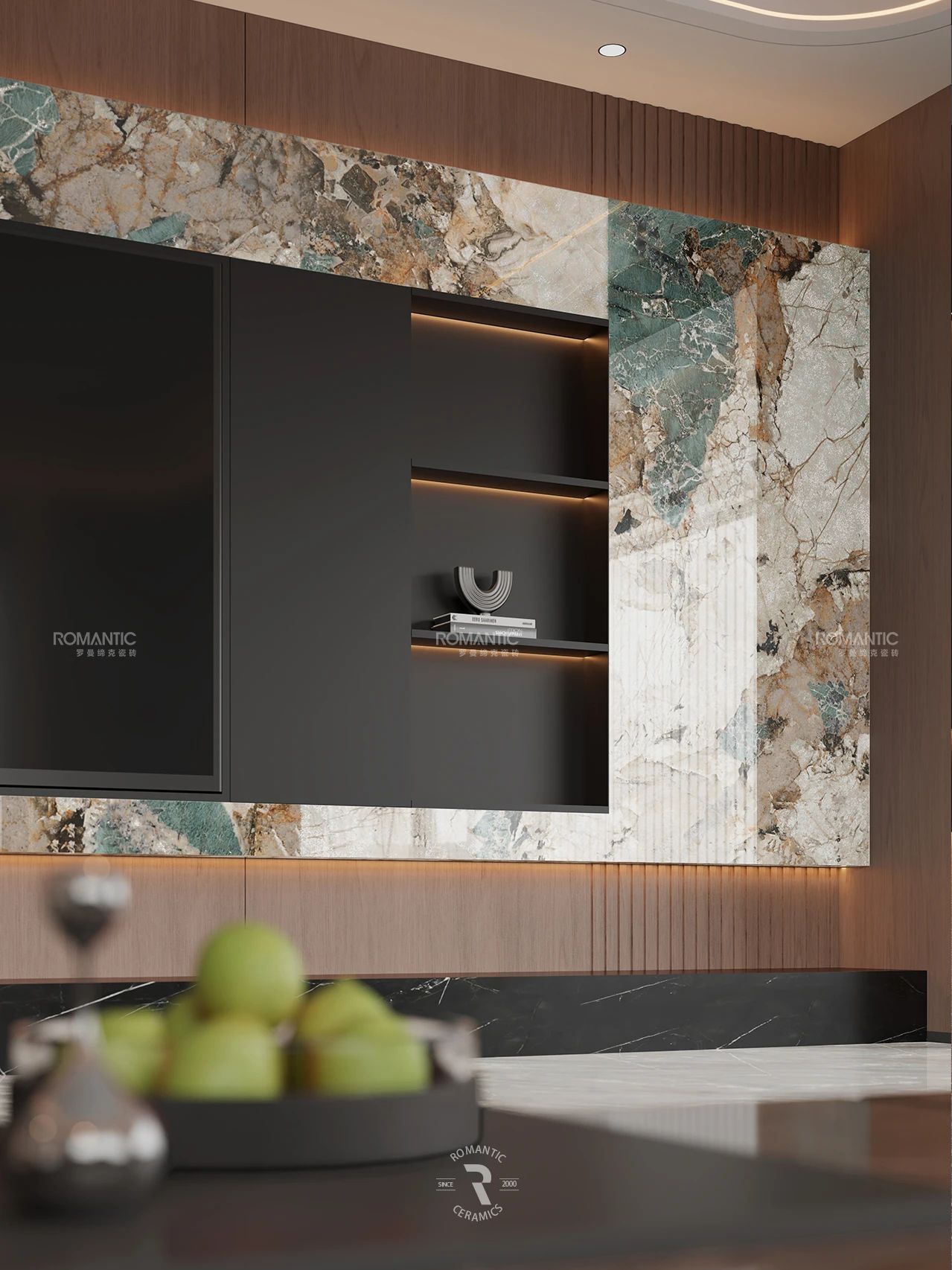 鏡湖春曉獨特的紋理與色彩組合,能夠瞬間成為空間的視覺焦點,適用于現代輕奢客廳丨高端酒店/會所,衛(wèi)
